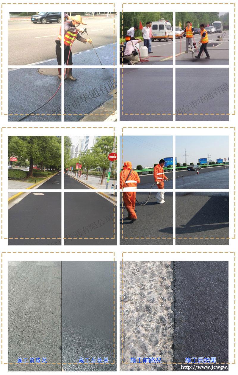 产品的使用范围广,可以适用于高速公路、桥梁、隧道、停车场等沥青路面,对道路表面的路面老化、贫油、脱色、渗水、细小裂缝、网裂、起砂、骨料松散和被污染的沥青路面修复还原,延长路面的使用寿命,提高路面质量。